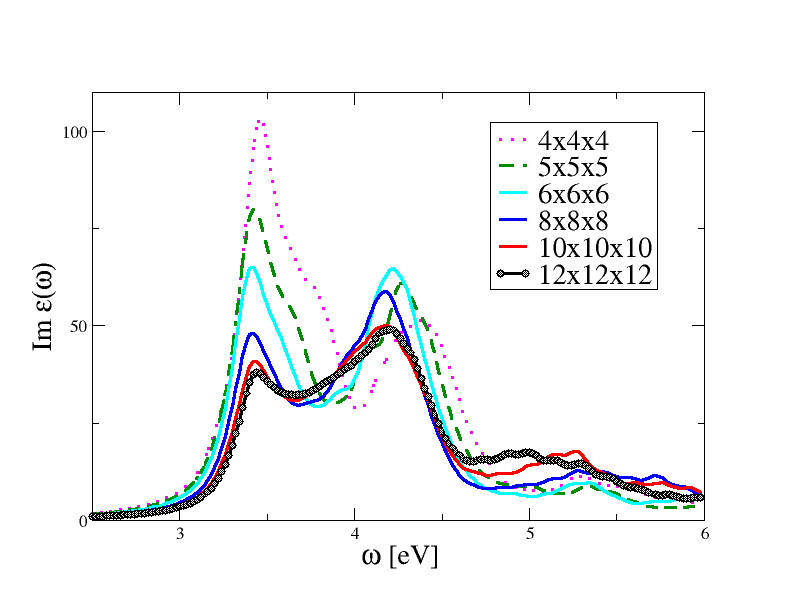 <div class="carousel-caption">Convergenge of BSE optical spectrum wrt k-point sampling</div>