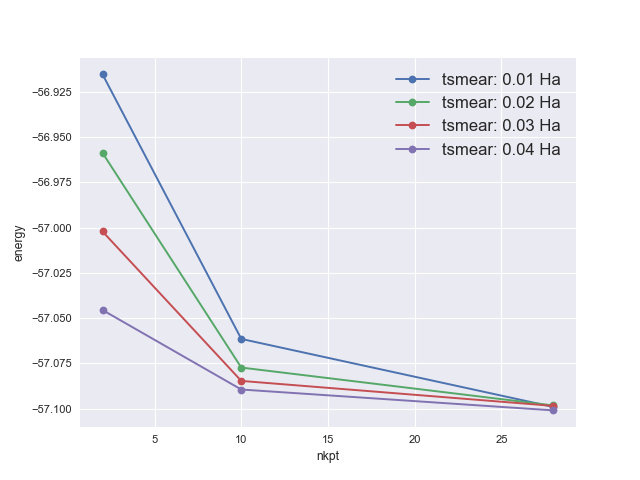 a smearing of 0.04 Ha, a kinetic energy cut-off of 6 Ha, the Al.psp8 pseudopotential,